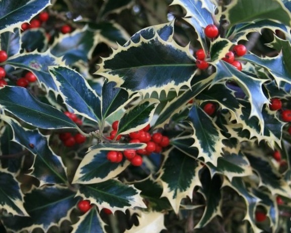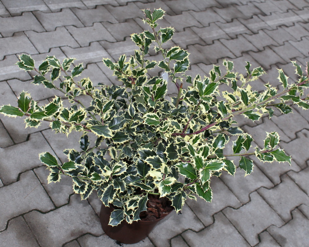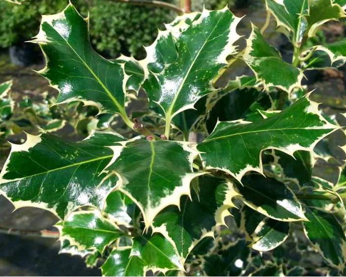 Высота 4 м, ширина 1,5 м. Годовой прирост в высоту 15 см, в ширину 10 см.Листья расположены очерёдно, относительно маленькие, яйцевидные, 4-5 см длиной, серо-зелёные мраморные, с широкой белой полосой, чаще всего без колючек или с очень редкими колючками на кончике листа.Растение двудомное, женские цветки маленькие, белые, с 4 стерильными верхушечными листьями, завязью и рыльцем, мужские цветки без завязи и рыльца. Цветёт в мае-июне. Плоды оранжево-красные округлые плоды диаметром 5-7 мм.