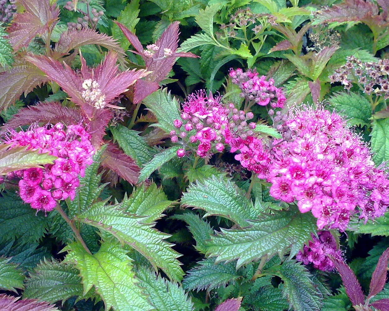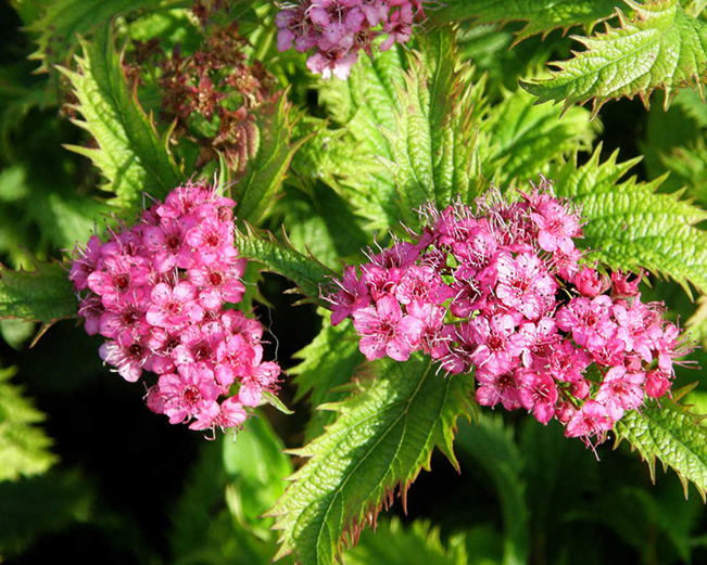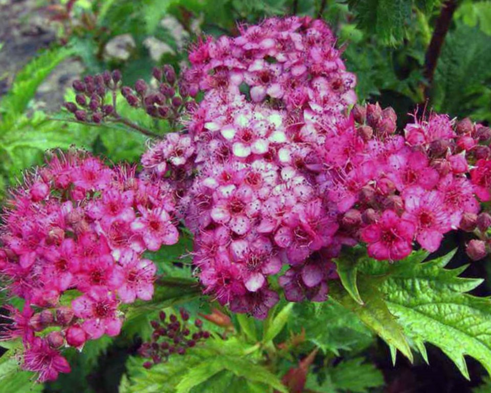 Цветы, которые окрашены в нежно-розовый оттенок, собраны в простые соцветия и появляются только на побегах второго года жизни. Максимальный диаметр соцветия составляет 6 см. Цветение начинается в середине лета и продолжается на протяжении 2 месяцев.