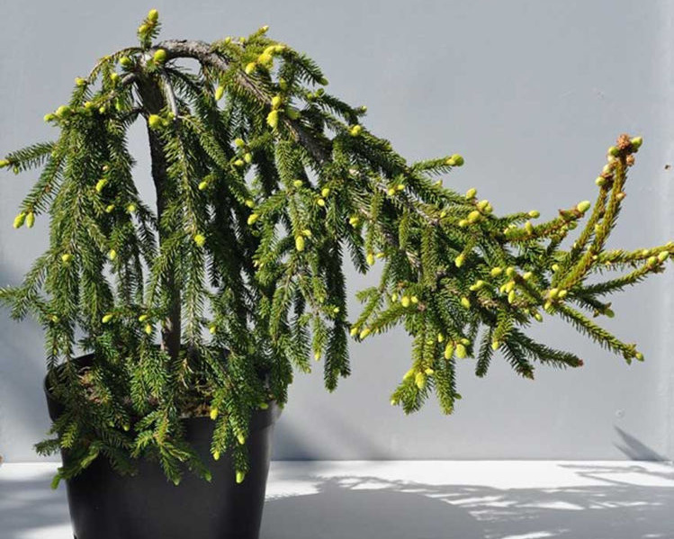 Для этого используется методика прививания или подвязывания веток. Владелец может самостоятельно выбрать будущий внешний вид дерева, сформировав его на ранней стадии роста. Особенностью сорта также считается и то, что ель не имеет основного ствола. По этой причине необходимо выбрать самый крупный побег и укрепить его с помощью опор.