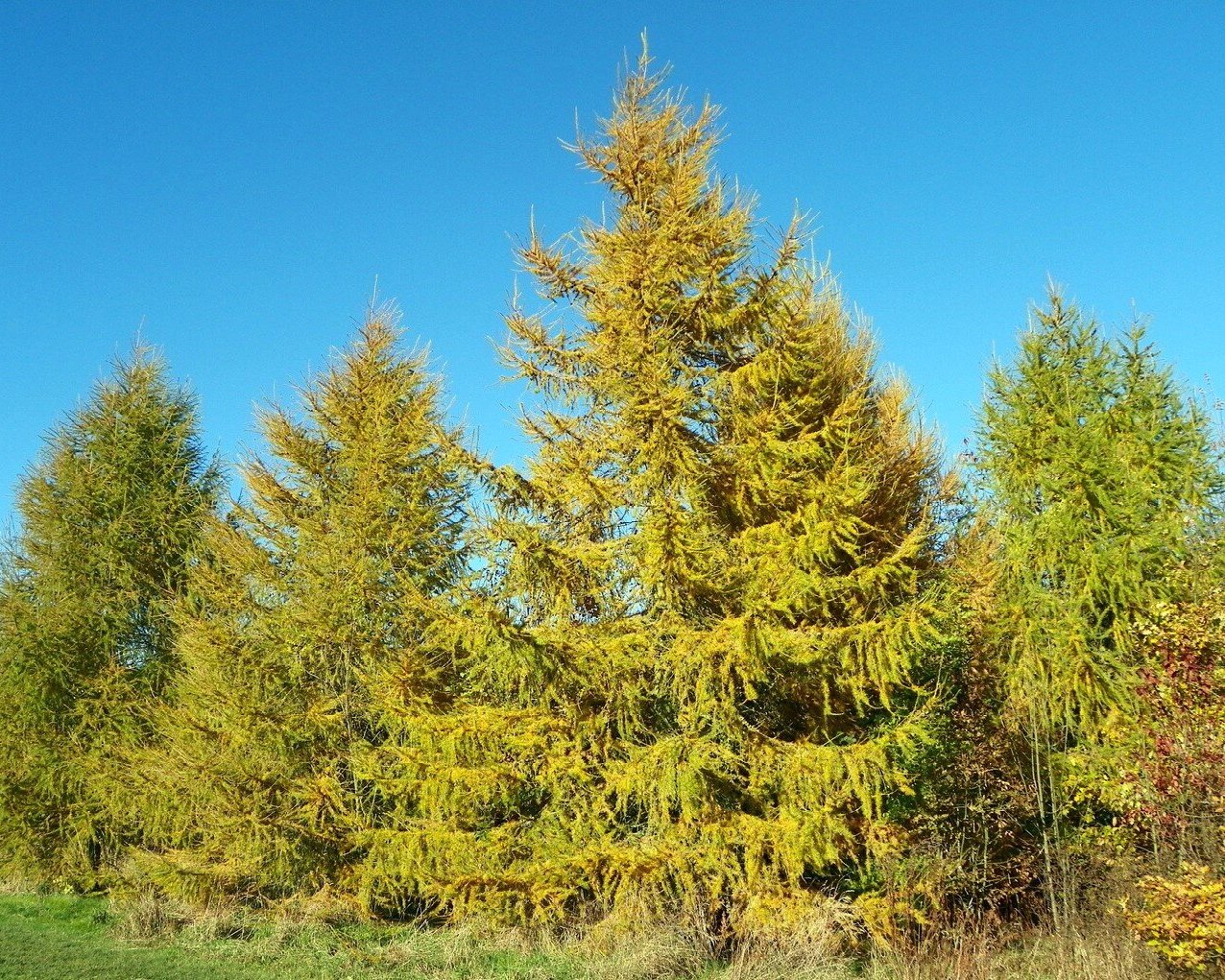 Осенью хвоя окрашивается в золотистой цвет, и вскоре опадает.