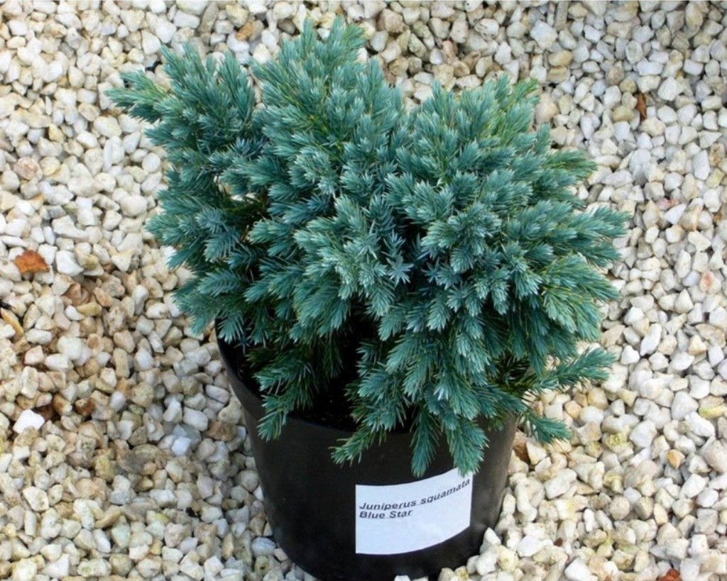 Растение принадлежит роду Можжевельники, латинское название Juniperus squamata Blue Star, на русском название можжевельника «Голубая звезда». Это один из самых красивых карликовых медленно растущих сортов этого вида хвойников.