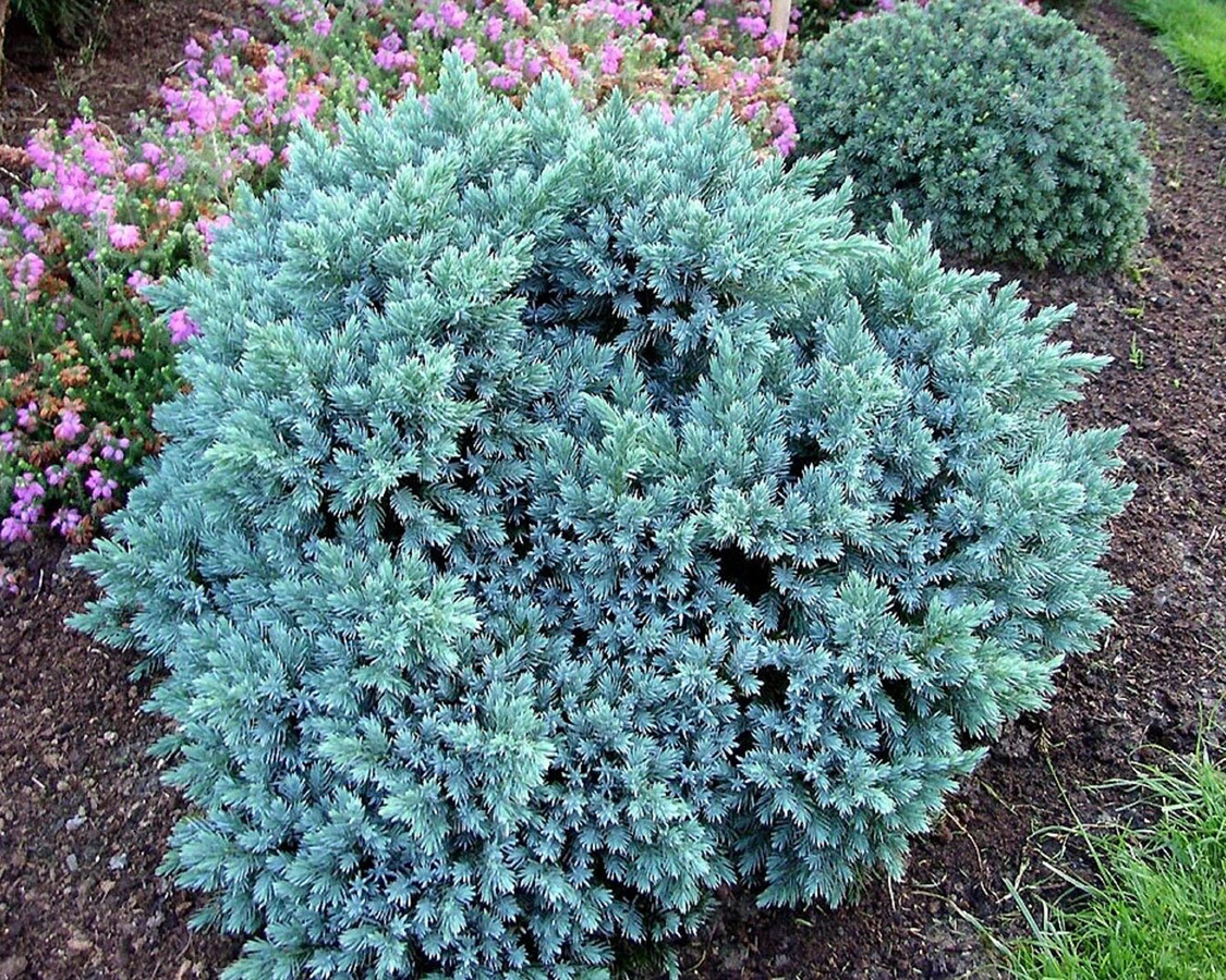 Сорт известен садоводам с середины 20 века, истоки его в Нидерландах. Можжевельник blue star образует стелющийся кустарник, высотой около полуметра. В ширину крона разрастается до диаметра в 150-170 см.