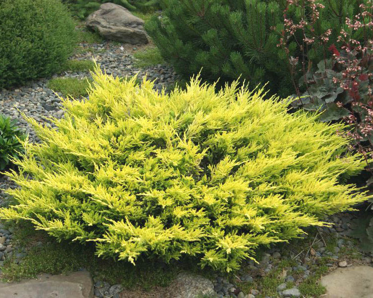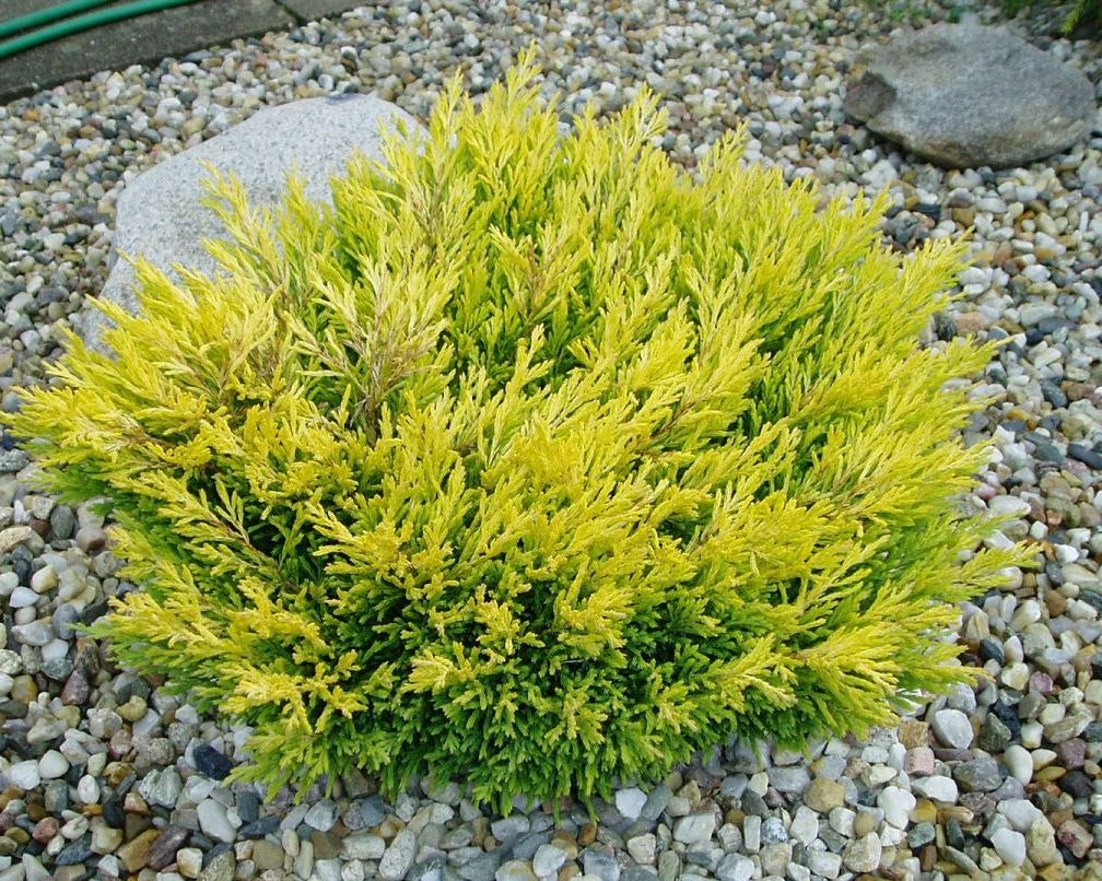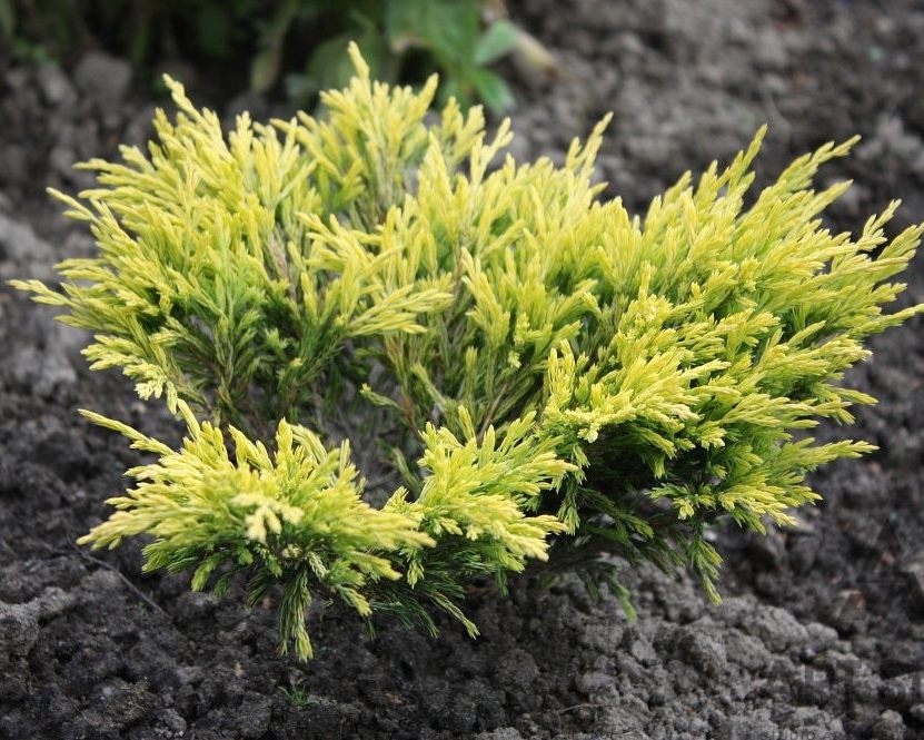 Хвоя кустарника чешуйчатая, плотная. В течение года оттенок хвои меняется: