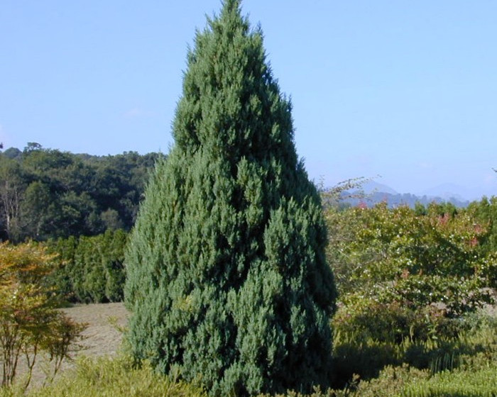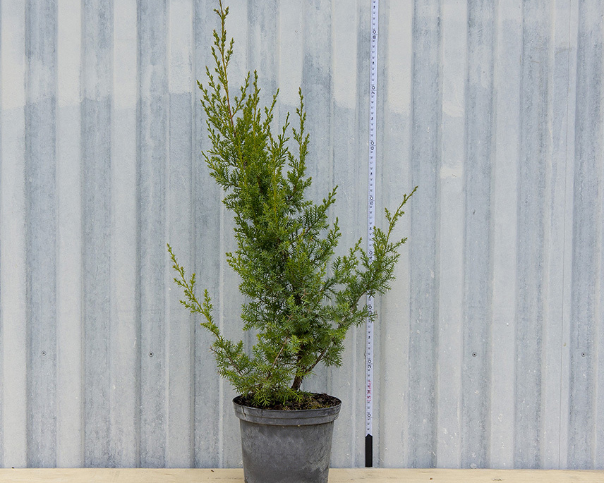 Можжевельник высокий, имеет достаточно простую форму кроны. У молодого растения крона коническая, но со временем она становится всё более и более широкой.