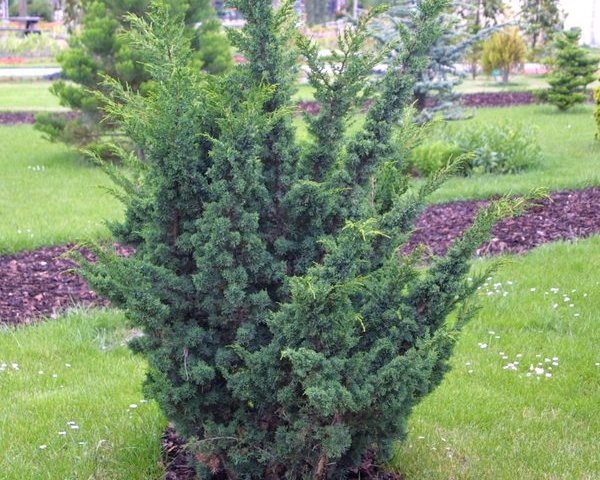 Вечнозеленый можжевельник китайский Блаув из семейства Кипарисовые — медленно растущее деревце, достигающее 180 см в высоту во взрослом возрасте. Диаметр куста не превышает 130 см. Годовое увеличение размера растения составляет 5–10 см.
