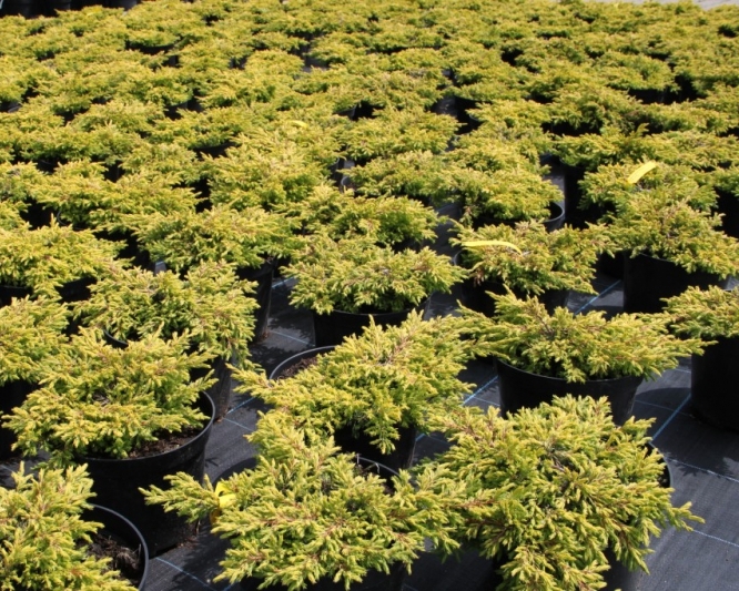 Можжевельник Goldschatz отличается долголетием и нетребовательностью к уходу. Кустарник используют: