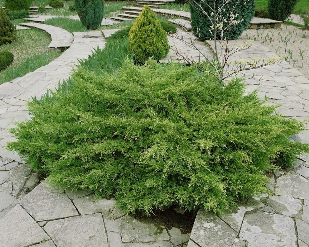 Можжевельник средний Пфитцериана Компакта получен в Германии от скрещивания двух видов хвойников: можжевельника Казацкого и Китайского. В результате селекции получено компактное растение, которое идеально вписывается в дизайн небольшого участка.