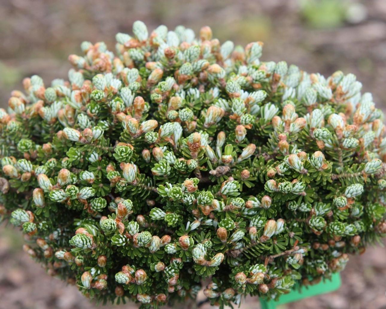 Пихта корейская Кристалкюгель - миниатюрный сорт пихты с очень плотной компактной подушковидной кроной. Ветви короткие густые. Хвоя светло-зеленая короткая, широкая, с характерной белой обратной стороной, растут радиально. Очень красивое растение, которое ежегодно прирастает на 3- 5 сантиметров. Отлично смотрится привитой на штамб.