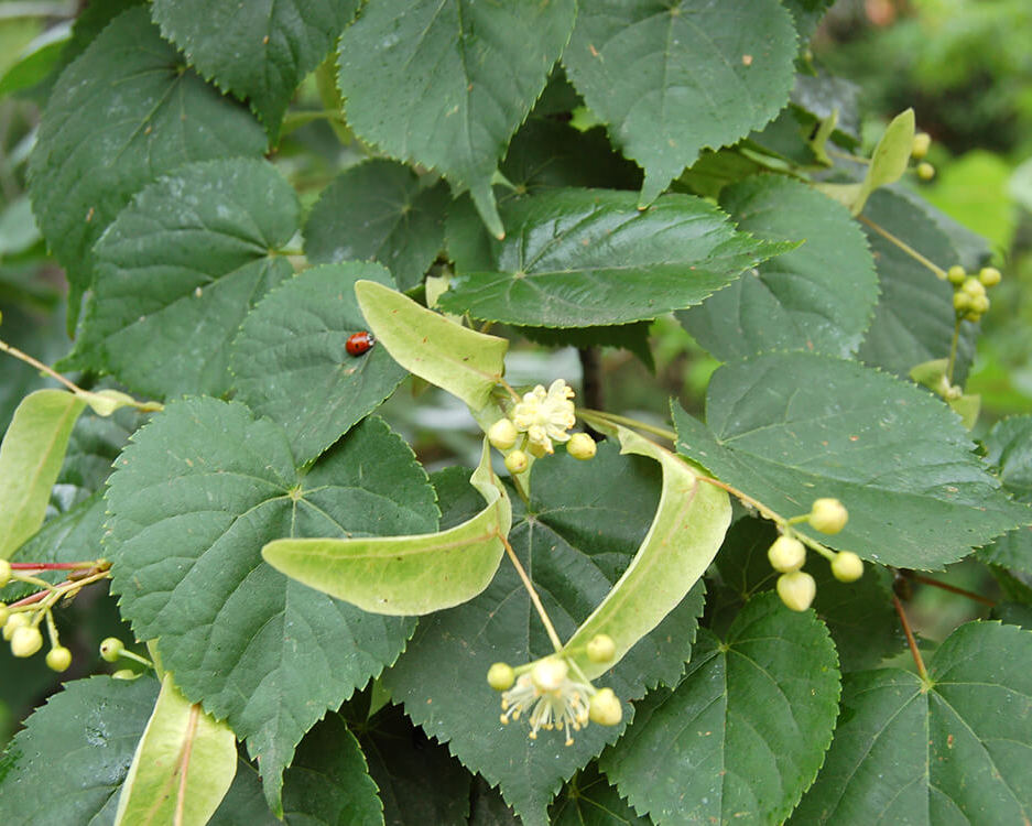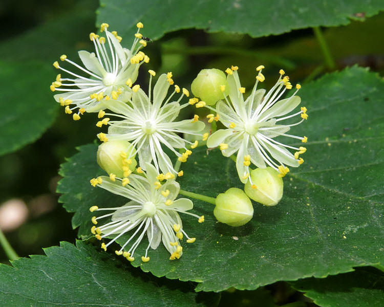 Листья темно-зеленого цвета, сердцевидной формы, заостренные, зубчатые. Каждый лист размером не более 4 см.