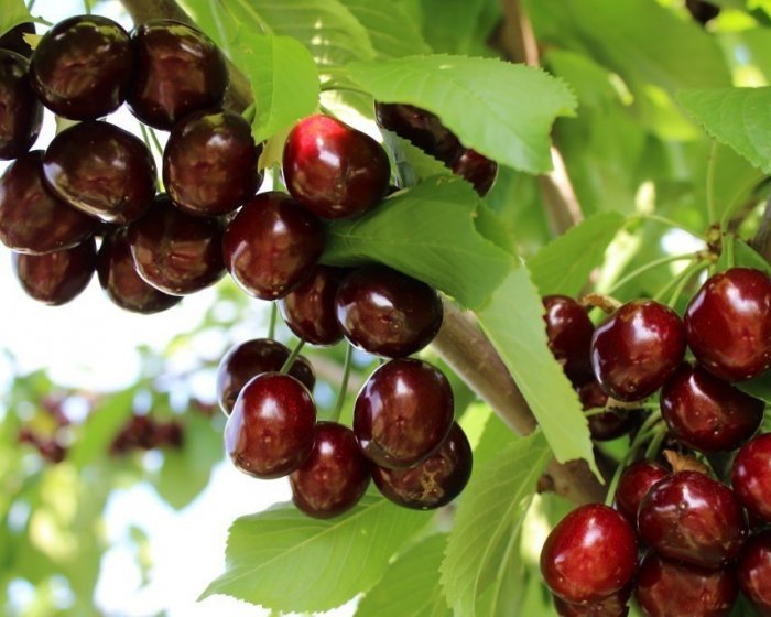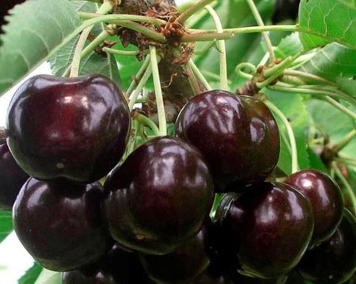 Ягоды сердцевидной формы весом по 5-9 грамм каждая. Косточка средней величины, полуотделяется. Окрас кожуры бордово-коричневый, очень темный, если смотреть с большого расстояния, а перезревшие ягоды приобретают практически черный цвет. Мякоть сочная, плотная, насыщенного красного цвета. Вкус ягод отменный, сладкий. Небольшая доля кислоты делает вкус свежим, а не приторно-сладким. Аромат ярко выражен.Употребляют в свежем виде и для консервирования (компоты, варенья, джемы).