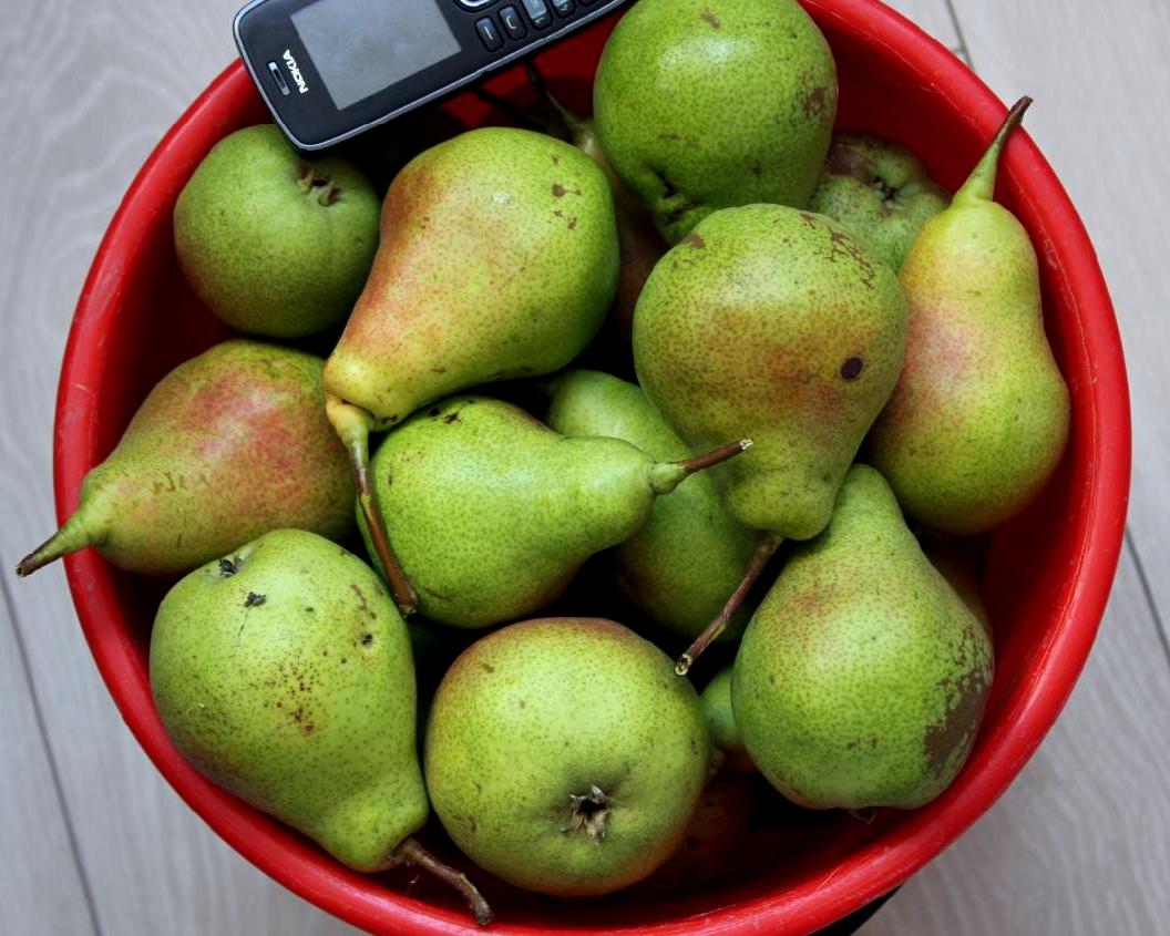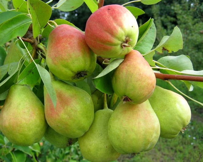 Размер фрукта варьируется между средним и большим. Максимальная масса составляет 252 г, а средняя — 180 г. Форма плода вытянутая, яйцевидная с нежной и гладкой кожицей. Мякоть груши нежная, сочная, белого цвета с приятным кисло-сладким вкусом. Спелые плоды окрашены в жёлтый цвет с ярким красным пятном на освещённой стороне. На кожуре видны мелкие, слабо заметные точки.