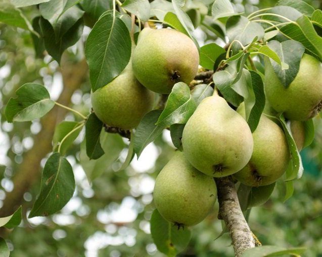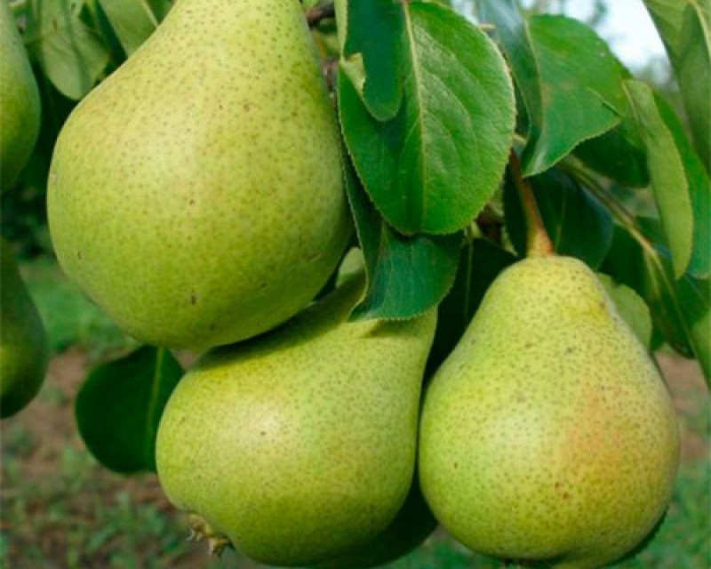 После цветения на культуре формируются плоды — достаточно крупные груши, характерной грушево-продолговатой формы, массой 200–210 г.
