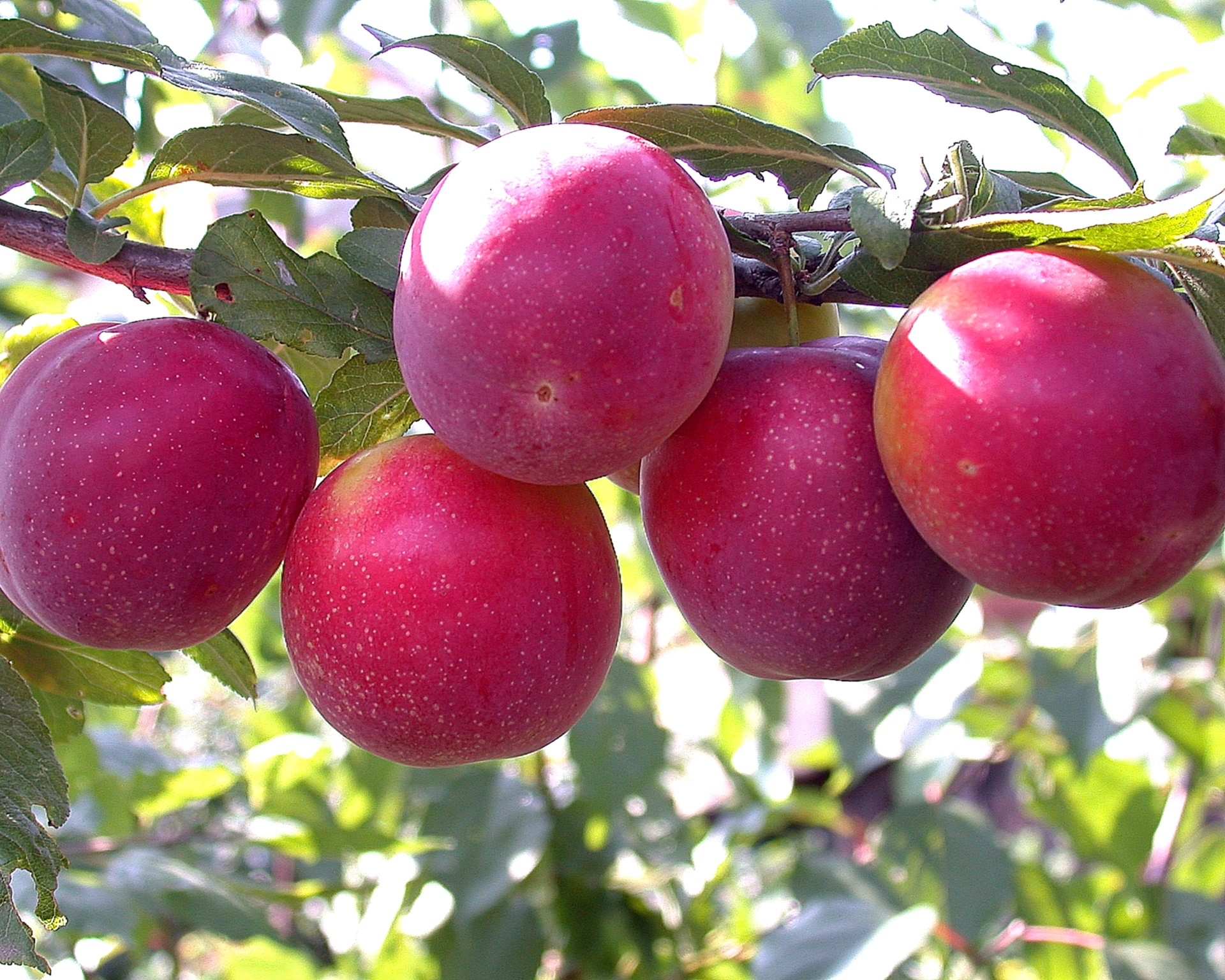 Плод сливы округлой формы, довольно мясистый с небольшой косточкой. Янтарная сочная мякоть с традиционным кисло-сладким вкусом. Может употребляться как в свежем виде, так и для приготовления различных блюд и домашних заготовок. Слива сохраняет упругость при консервации и целостность кожуры, что очень ценится хозяйками.