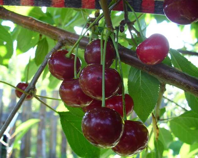 Ягоды довольно крупных размеров, весом от 4 г до 7 г. Форма у них овальная: круглая основа и удлиненная верхушка. Вишенки темно-бордового цвета. Косточка у них тоже достаточно большая и занимает около 7,7% от общей массы плода, хорошо отделяется от мякоти. Мякоть характерна своей плотной структурой и сочностью. По вкусу ягоды приятно кисло-сладкие, чем-то похожи на черешню.