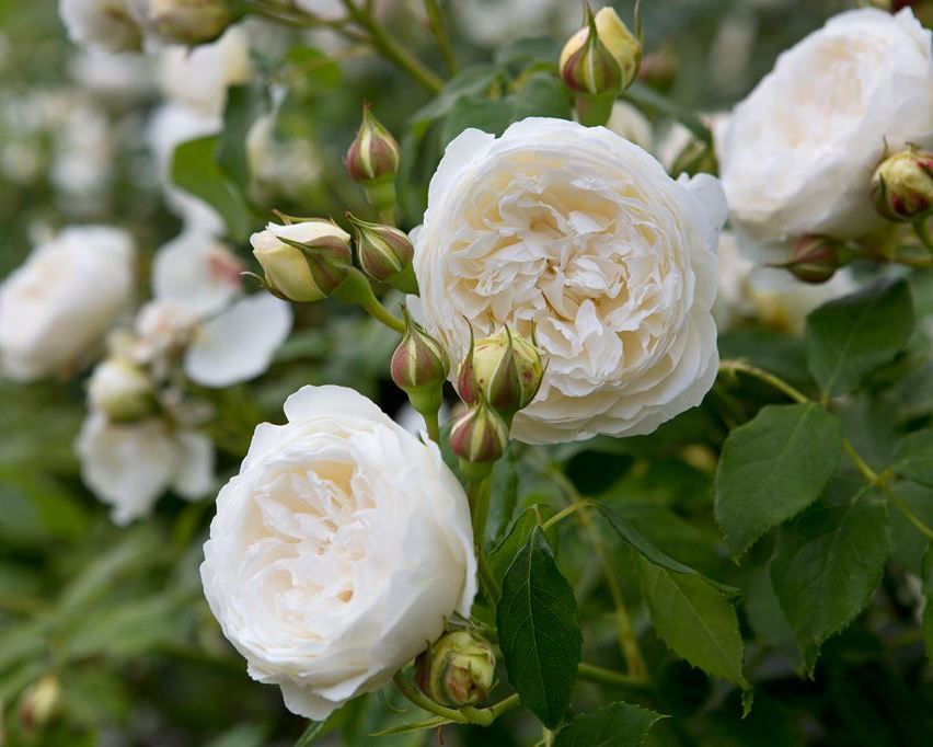 Куст элегантной формы, с дуговидно поникающими побегами, обильно облиственный. Сильный и достаточно устойчивый к болезням сорт. Несомненно лучший белый сорт среди английских роз на настоящий момент.