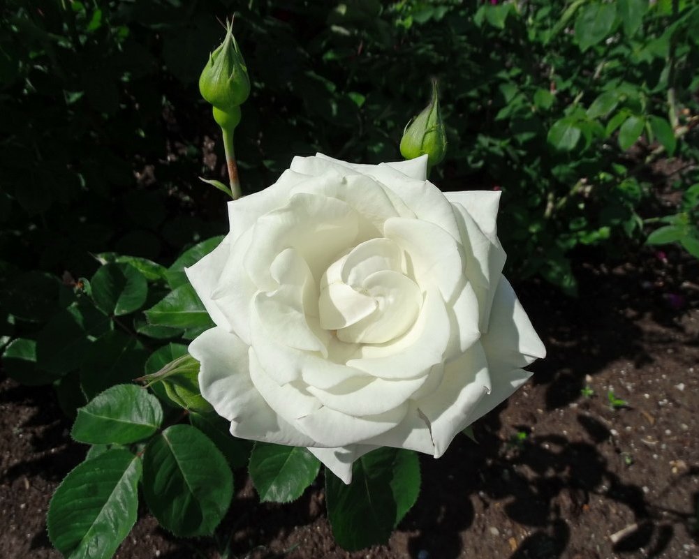 Размер куста составляет 80-90 сантиметров. Куст прямостоячий, достаточно пышный. Листья темно-зеленые, гладкие и кожистые. Шипов у этой розы нет или их совсем мало, что очень удобно в уходе и для использования этого цветка в букетах. Роза устойчива к морозу, к мучнистой росе и черной пятнистости.