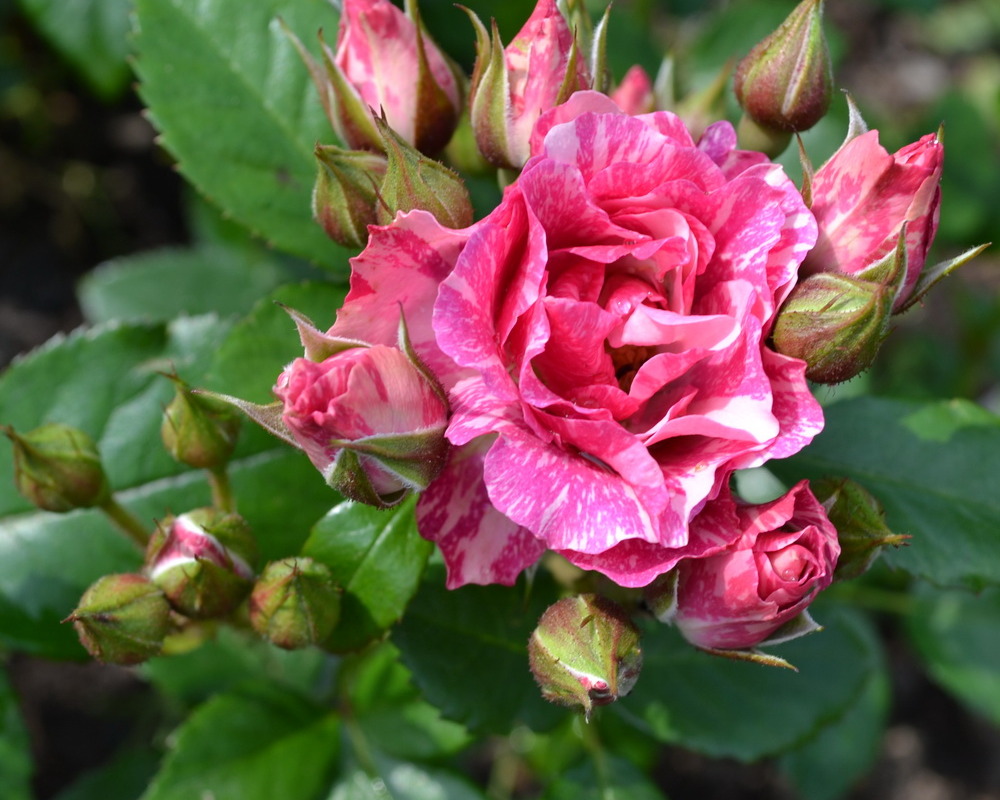 Куст аккуратный, ветвистый, густо облиственный, компактный. Цветоносы - крепкие, прямостоячие. Цветы смотрят вверх. Высота от 50 до 70 см, ширина – от 40 см до 60 см. Листва темно-зеленая, кожистая, здоровая.