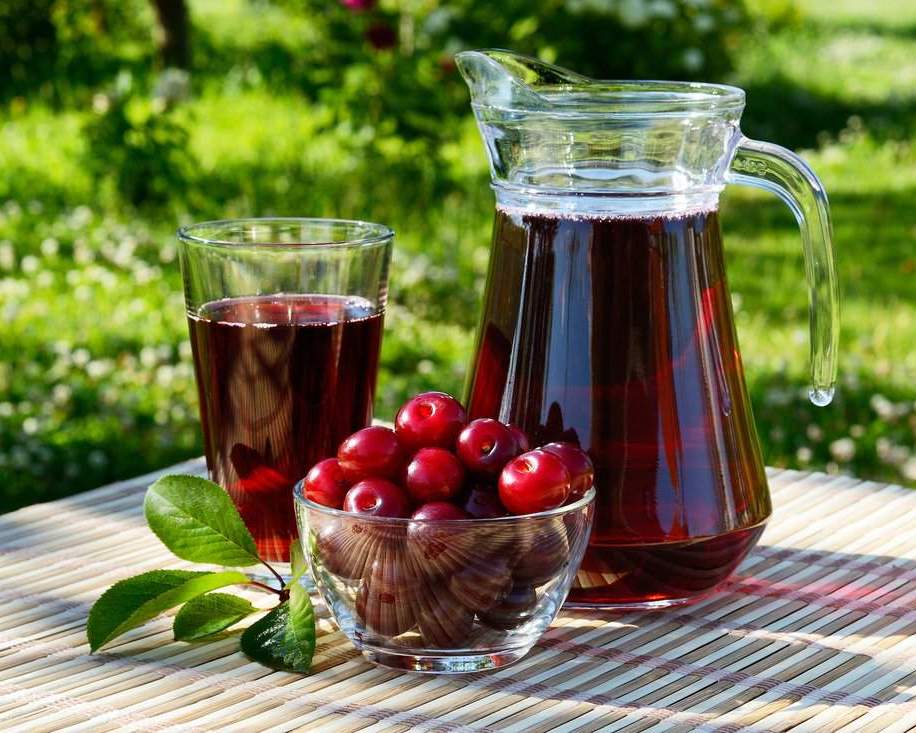 Для приготовления полезного напитка выбирают только спелую темную вишню. Для определения сочности на ягоду слегка нажимают. Если сок брызнет, значит, она полностью подходит. Выбирают только целые экземпляры без видимых повреждений.
